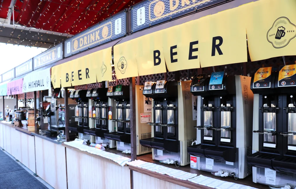 これ本当にすごいですよね。お家でなかなかビールが飲めないとお嘆きの方、「阪急トップビアガーデン」で様々なビールを思う存分飲んでください!冷えたグラスにたっぷりの好きなビールを注いで楽しんで!