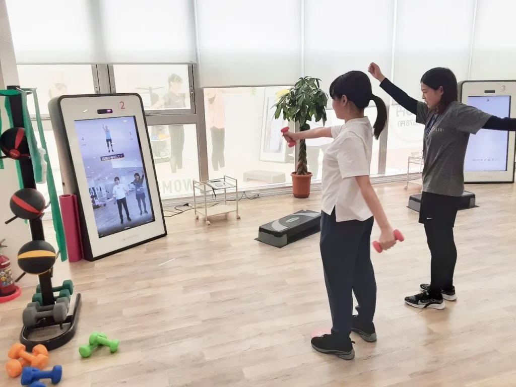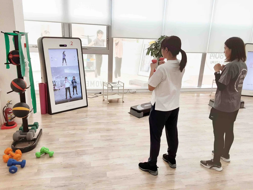 AIトレーナーがお手本となる動きをしてくれるので、自分はモニターを見ながら同じ動きをするだけでOK!