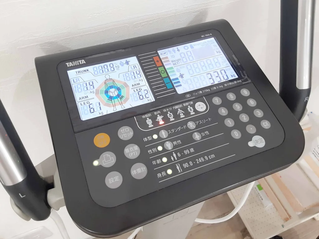 無料体験は、体組成計で自分の体脂肪率、筋肉量、水分量などを測定するところから始まります。