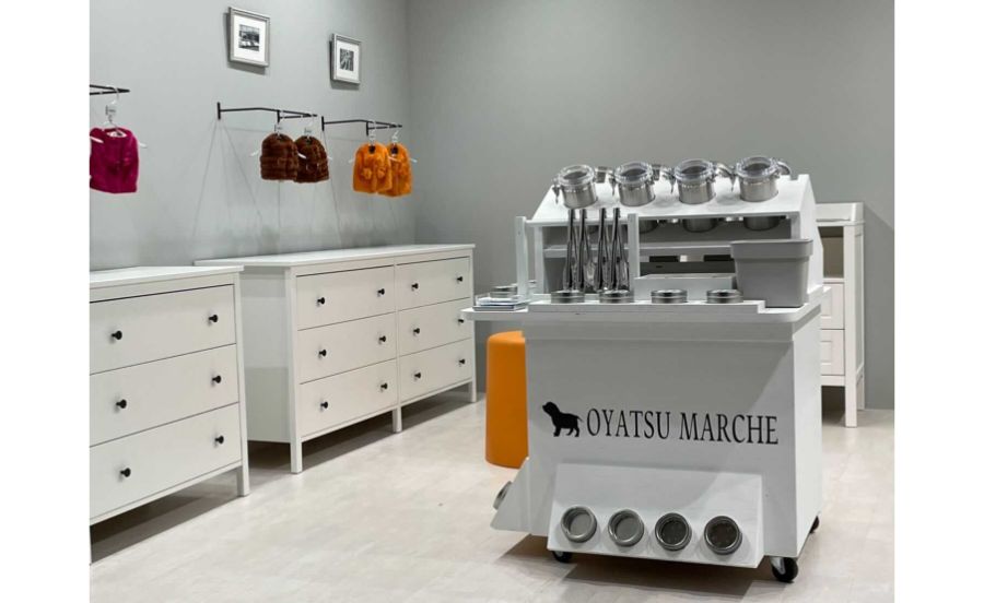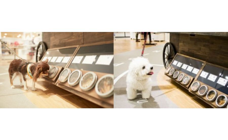 店内では愛犬が好みのおやつを発見できる『おやつマルシェ』も設置。愛犬が自分で匂い比べをして、気に入ったおやつを好きなだけ量り売りで購入できる。