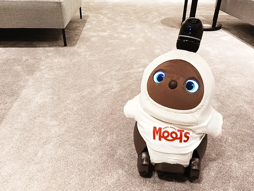 「HOC Premium Lounge」では、AIや深層学習で成長していくロボットがお出迎え。キュートなまなざしで見つめられると、ついつい顔もほころびます。ラウンジ内では、各テーブルにタブレット端末を設置。ここでも物件情報やリフォーム・リノベーションなどすまいや生活に関する情報や優待情報などを得ることができます。