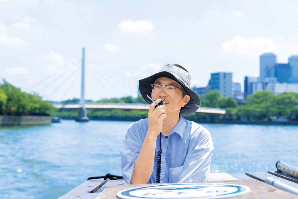 また、「水上を土木作業用の重機や砂糖を運ぶ作業船が行き交うのも大阪の大川らしい光景。”生きている水路“を巡れるのも魅力です」とのこと。さりげなく披露される船長のガイドとともに、心地よいひと時を過ごそう。