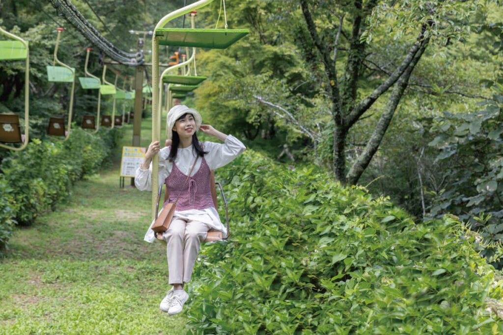 「妙見の森リフト」では、約12分の空中散歩に癒やされる。能勢電鉄の西島さんによると「リフトからは四季折々の自然を楽しめるほか、たまに鹿に遭遇することもあるんですよ」。営業終了の時期については能勢電鉄ホームページにて確認を。冬季休業もあるため、今を逃さず訪れたい。