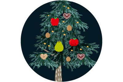 ツリーの頂点の星は、イエス・キリストが生まれた時に輝いていたという「ベツレヘムの星」を表し、「希望の星」という意味があります。リンゴは「旧約聖書」のアダムとイブを連想させ、リンゴを飾った木は「楽園の木」を意味します。赤いリンゴは「愛」と「豊饒(じょう)」、丸い形は「永遠」と「地上」の象徴。ヨーロッパでは生のリンゴをツリーに飾っていましたが、長い間飾ることを考え、19世紀頃からはガラスの玉で代用するように。今のオーナメントボールの原型はリンゴだったというわけです。
