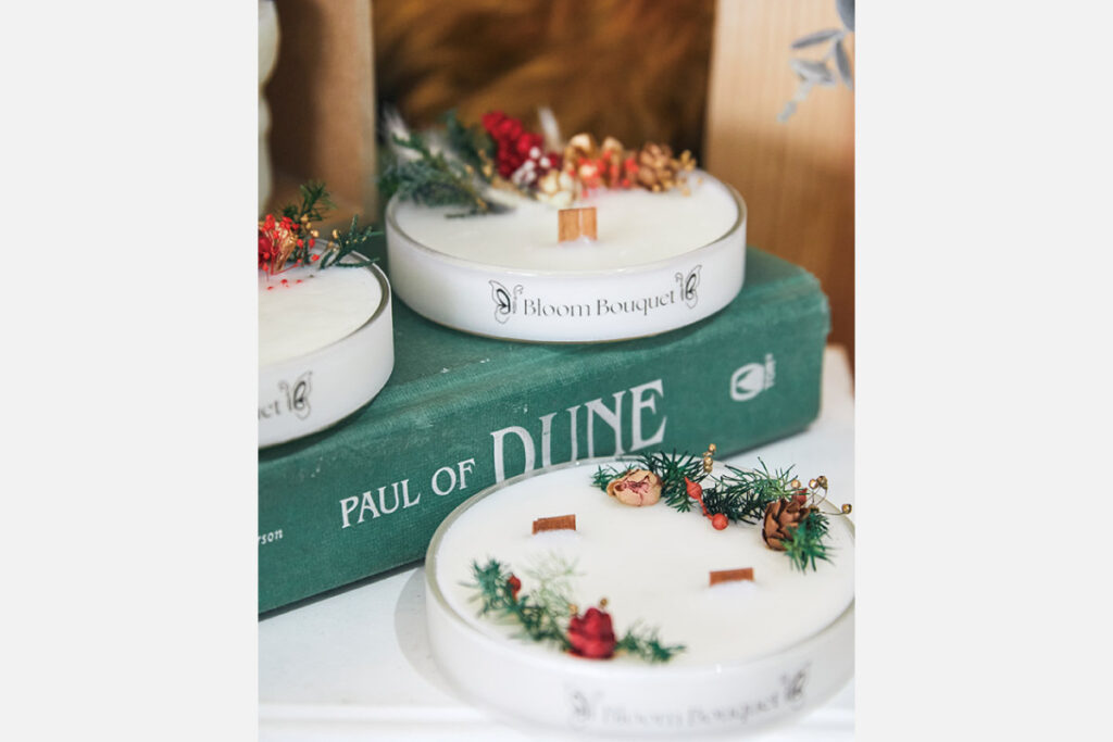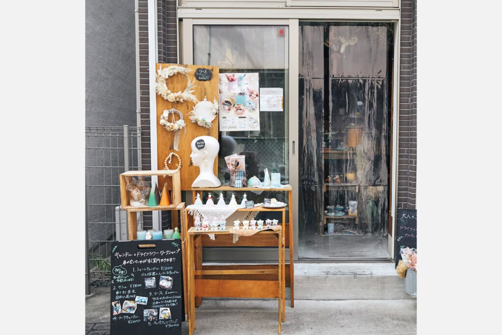 大阪・中崎町で2023年11月にオープンしたばかりの店内には、店主の山本さんが手作りしたキャンドルやドライフラワーがぎっしり! キャンドルは主に大豆由来の「ソイワックス」で作られており、すすが出にくく柔らかい光を楽しめるのが特徴。