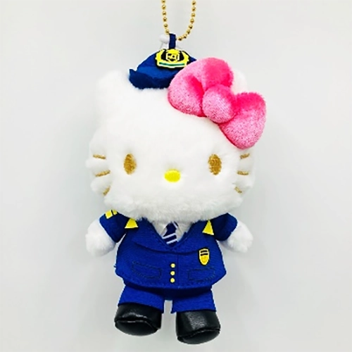 制服を着たハローキティのマスコットチャーム。バッグに付けるのにもぴったり。