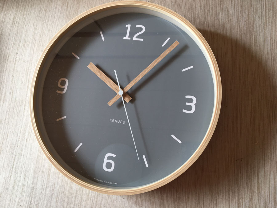 白地に黒い文字色の掛け時計をよく見かけますが、文字の主張がきつかったり、主張しないものだと逆に文字が小さくて時刻を認識しにくかったりするのが気になっていました。「クラウス」の掛け時計は、すっきりしたデザインなうえ、ちゃんと時刻を認識できて見やすい点が優れているなぁと思います。
